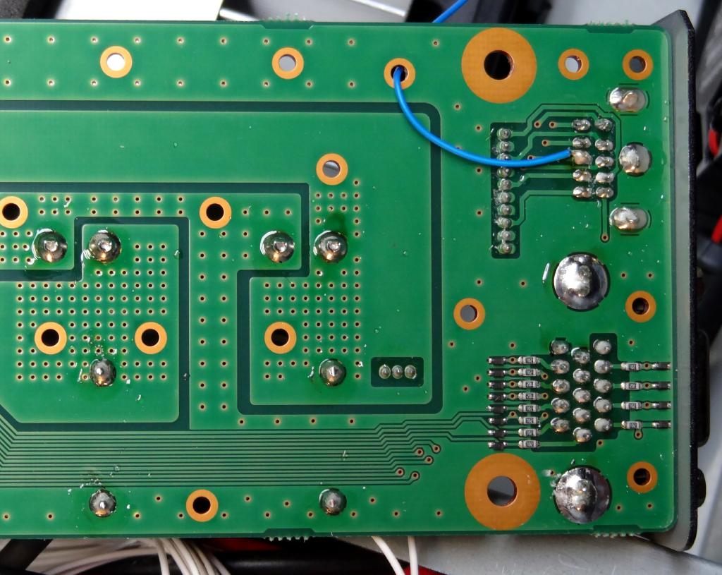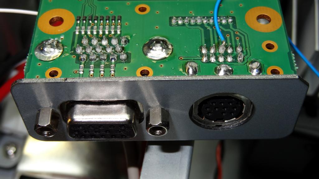 Doing some additional investigating I found two places where COS could possibly be detected. The DB15 control connector on the rear panel pin 4 goes low on signal. Unfortunately it follows squelch not PL so it triggers even with PL into the repeater turned off. Another option is the mini DIN connector next to the DB25 connector. The Squelch pin there does follow PL and does not trigger on non PL input. I wanted to do all wiring internal to the repeater so I soldered to the connector pins on the bottom side of the board. See the photos showing this below.To remove the board remove all connections. The connector with all the loose white wires and the DC connection to the module in front of it can be left on. Remove all the screws and slide the board back and turn it over to access the connector pins.