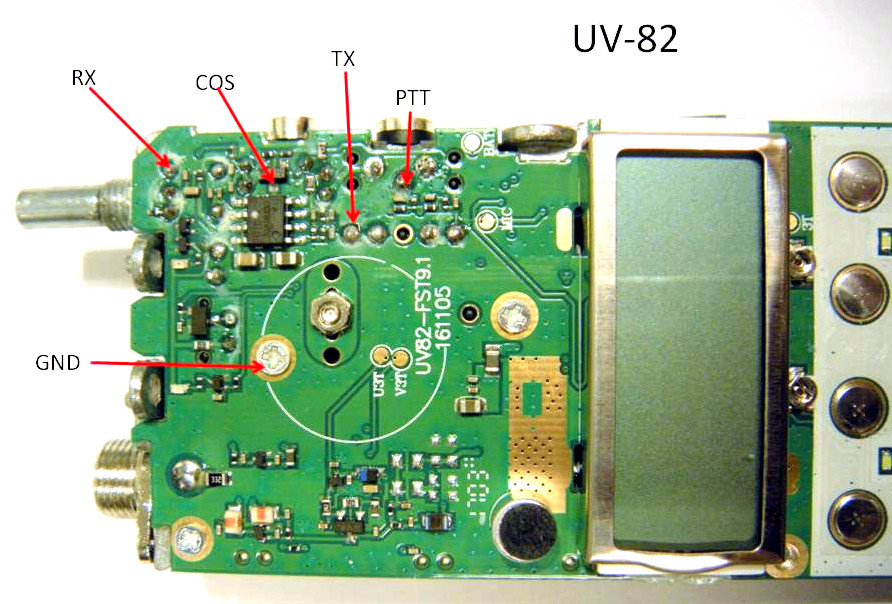 Here are the connection points on the UV-82 circuit board