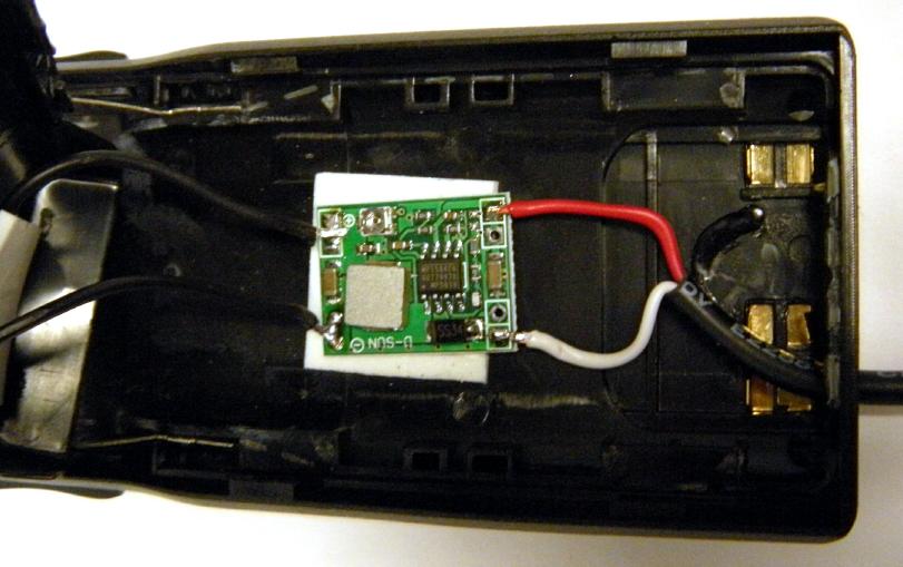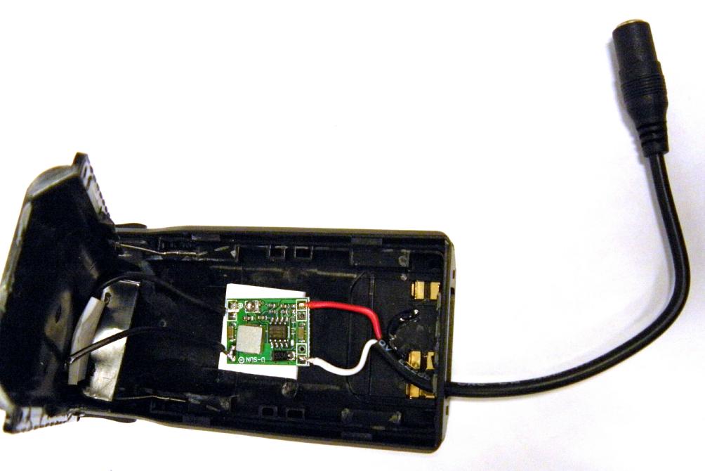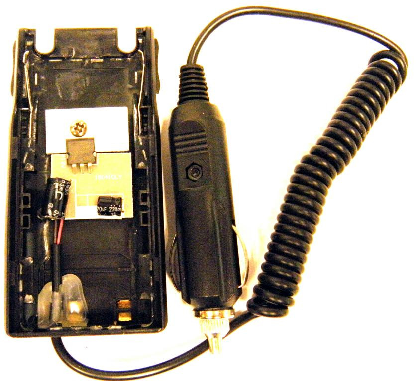 The UV-82 being a handheld is normally powered by a battery but as a node radio you would need a steady fixed source of power. The 12V battery eliminator adapter for the UV-82 is one way to do this but the commercial adapters are not well designed electrically. They use an inefficient three terminal regulator and an inadequate heatsink. This quickly heats up and would destroy itself in short order. The answer is to open the car adapter, remove the original regulator, and install an efficient replacement regulator. Here is what the adapter looks like before removing the original parts.