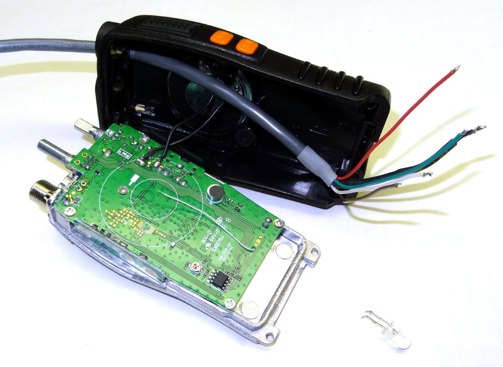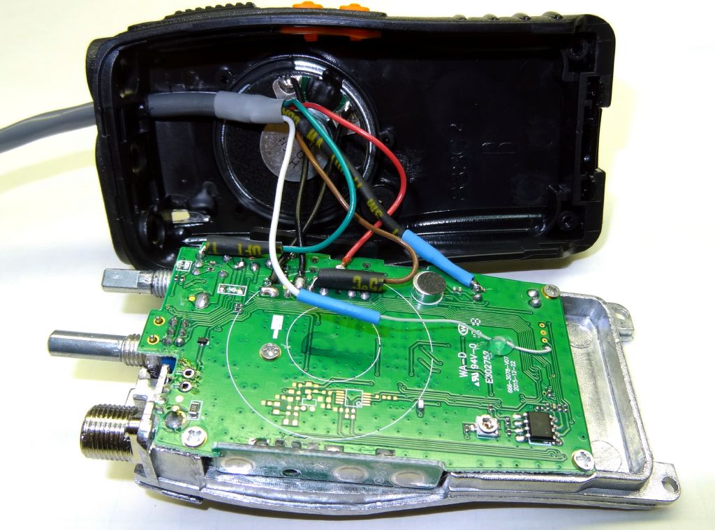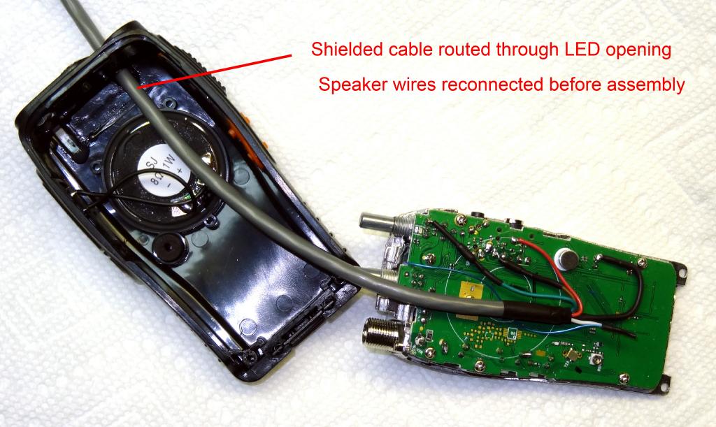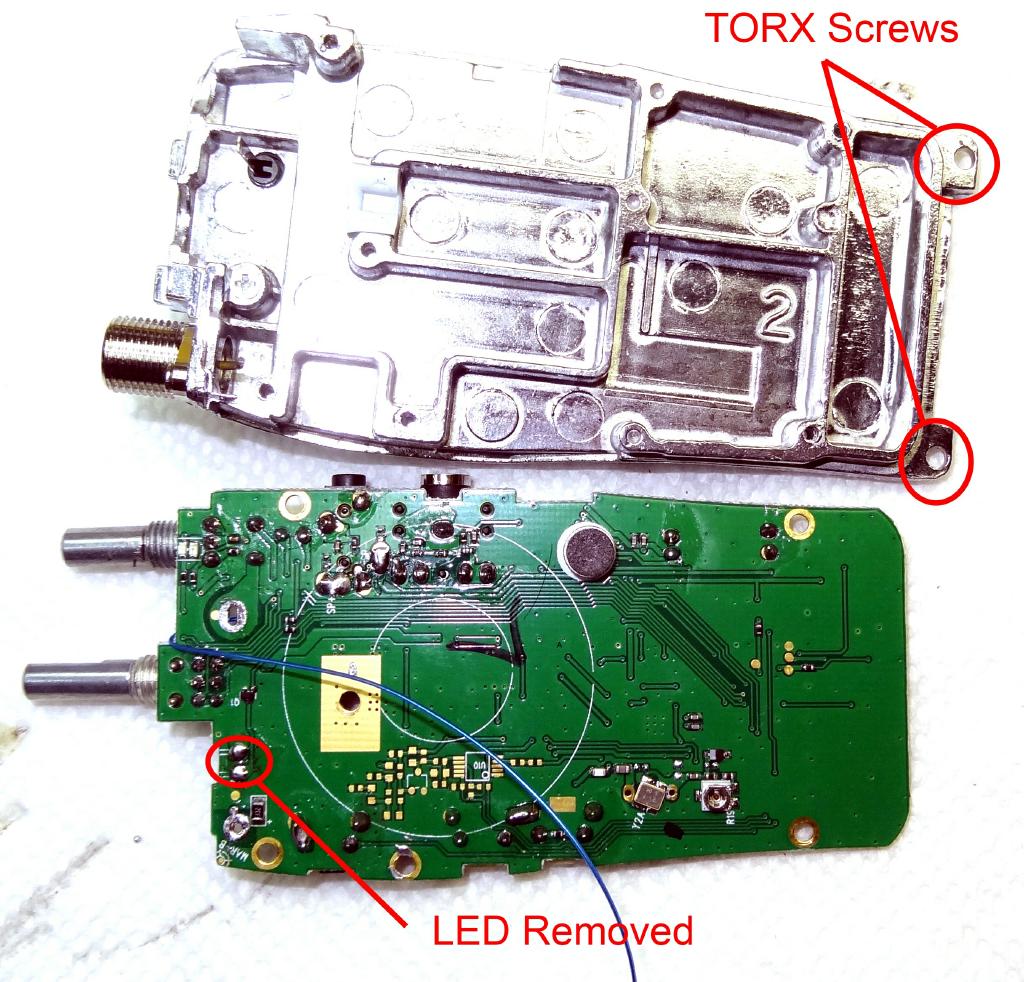 I ordered two more 888's and since it has been awhile since I mod'ed my first one I re-documented it again this time August 14, 2016. The radios I received followed several of the above photos so refer to them for reference. Here is what I did. First disassemble the radio as above and remove the LED. I used solder wick and it came right out. If you should ever desire to reinstall it save the LED in a safe place otherwise throw it in the junk box. There is no need to disconnect the speaker in fact it is desireable not to. If you don't jerk things around during this process the speaker leads will not pull off.