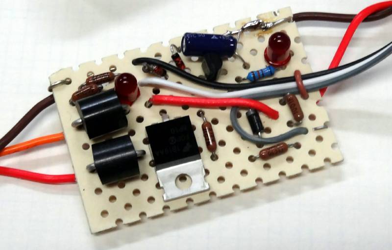 PC boards for this project will be made available. Here is a photo of the bare and populated board, as well as a typical wiring setup.