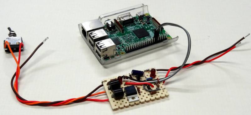 The circuit described here should eliminate all of these problems. It automatically shuts down the Pi and node radio when you leave the car or turn off the node with a power switch. In its simplest form all you have to do is turn the ignition off in the car and leave. When you return the pi will boot back up and make your outbound connection all without operator intervention. A couple of alternative circuits are described with and without a small backup battery.